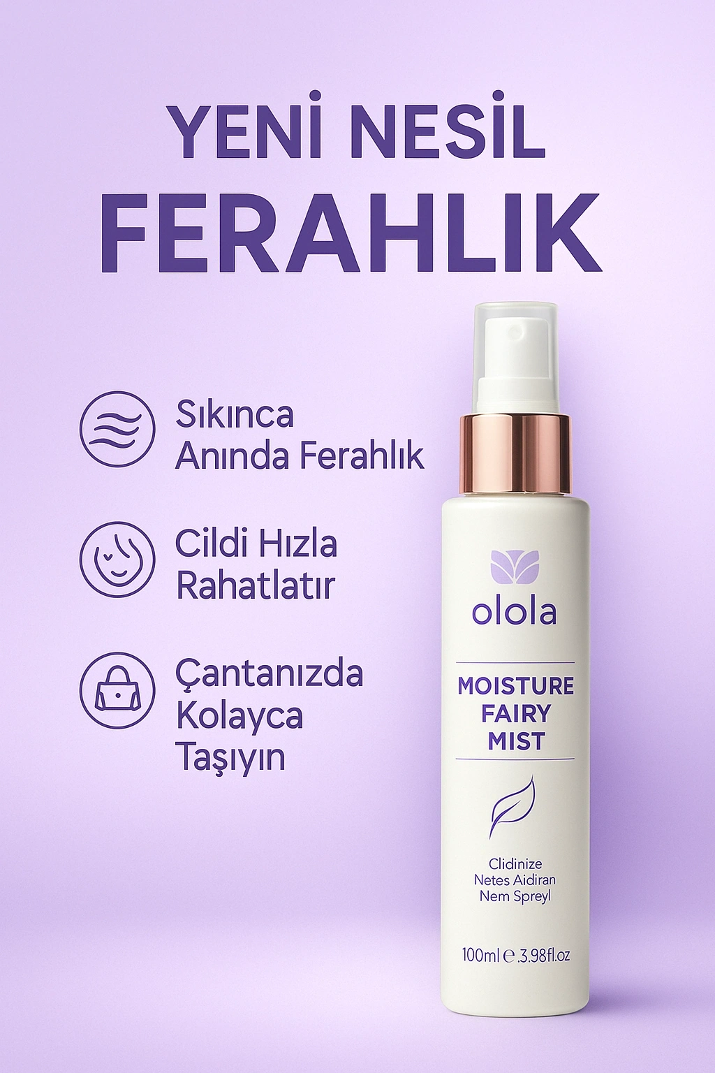 Olola’nın özel formülüyle geliştirilen Nem Perisi, cildinize anında ferahlık ve yoğun nem kazandırır. Hafif yapısıyla makyajın üzerine bile rahatlıkla uygulanabilir.